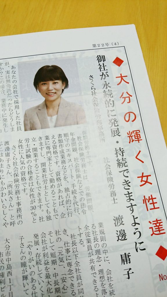 「女性タイムズ」10月号に さくら社会保険労務士事務所 の記事が掲載されました。